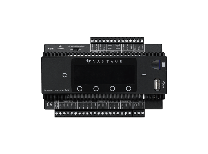 Known as the main brain of Vantage lighting systems, the InFusion Controller has the processor speed, RAM and flash memory needed to support the delay-free control of large, complex lighting systems that measure at up to 120 RadioLink stations and 120 WireLink stations.