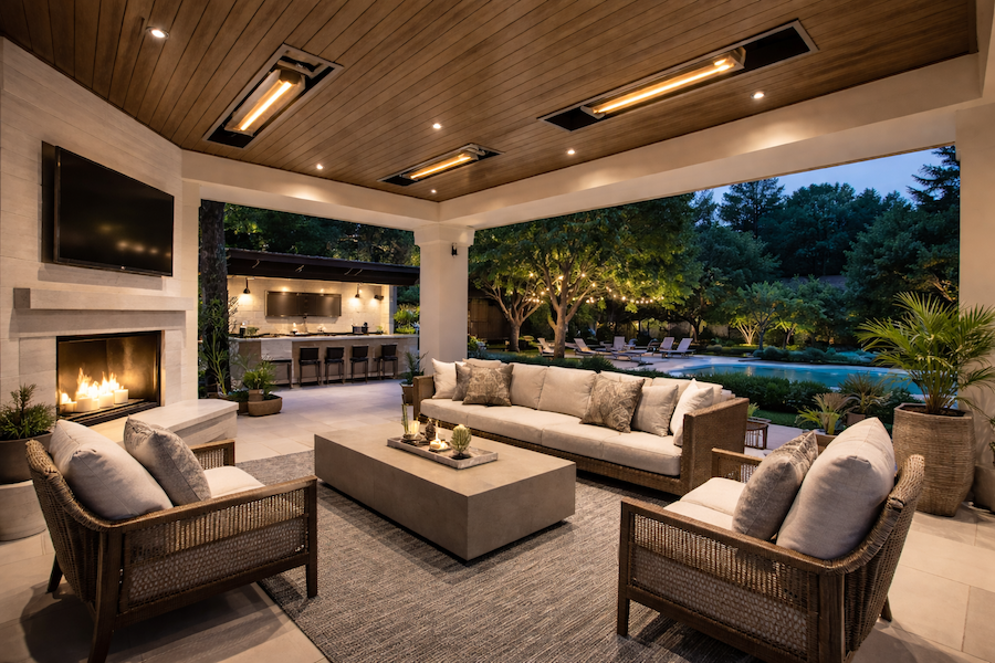 The good news is that you don’t have to choose between a patio that feels inviting and one that looks stylish and luxurious. Today’s outdoor comfort solutions can be quietly integrated into the architecture, so the warmth and protection show up, while the equipment stays out of sight. Keep reading to explore how we can turn your patio into a cozy retreat without sacrificing its beauty.